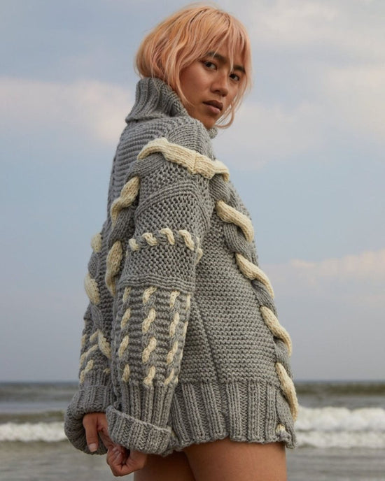 Each Barbora knit is crafted by hand by our kick-ass knitters in Lithuania. Barbora's our trickiest knit yet as she has a very technically difficult pattern that only a few of our super skilled knitters know how to master. She can take between five and seven days to knit and, as she's totally handmade, each knit is unique and no two are identical.
