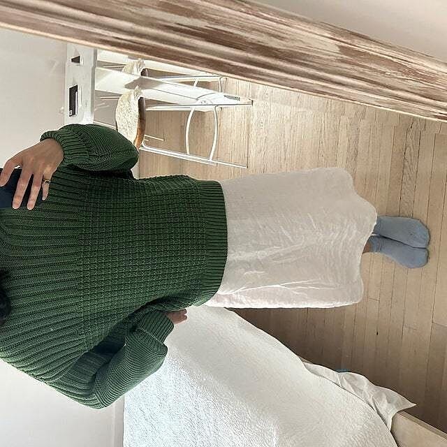 "Delčia" means "half-moon" in Lithuanian, and her half-and-half stitching was inspired by our Baltic pagan roots and the changing cycles of the moon. In pagan culture, people are big believers in the moon's energy and staying in touch with it. The Delčia organic cotton sweater embodies that perfect balance between the two extremes of the young moon and the full moon. Additionally, the sweater is designed with an oversized width that stays consistent across all sizes, providing comfort and a relaxed silhouette for every wearer.