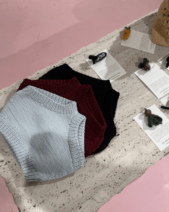 We're seriously proud of the knitters team we've gathered. Some work full time, others knit when they have time after taking care of their families. Currently, we have around 70 hand-knitters who work from home in rural Lithuania and two vetted, audited, family-run, female-founded partner production factories. Wanna put a face to a name? You'll also receive a card about the knitter who made your Knit Panties.