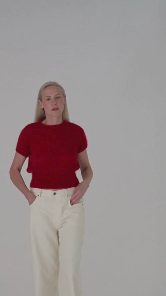 We called this top Lašas - Lithuanian for “drop.” This round-neck baby tee features cap sleeves and a statement open back - a balance of minimalism and surprise. Handcrafted from our lightweight blend of RWS-certified mohair and cruelty-free Mulberry silk, Lašas feels soft, airy, and delicately sheer against the skin. Finished with rolled edges and a fully-fashioned, seamless construction, she’s the definition of effortless sophistication. Wear her layered or let her shine on her own. Fit is true to size.