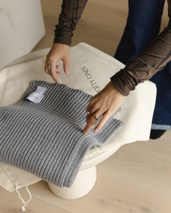 For this knit we partnered up with a family-run knitwear factory in Šiauliai, a small town in Northern Lithuania. The owner of the factory is Mrs. Zina who founded the company over 30 years ago. Growing up she always dreamt of becoming an orchestra conductor, but running a factory as beautifully as she does might not be that far off. Today Mrs. Zina employs over 20 women from the local community who all refer to her as a mother figure. All her employees earn a living wage and are entitled to 4 weeks of annual paid leave, 24 months of paid maternity leave and paid sick leave. Each knit comes signed by a woman who made it.