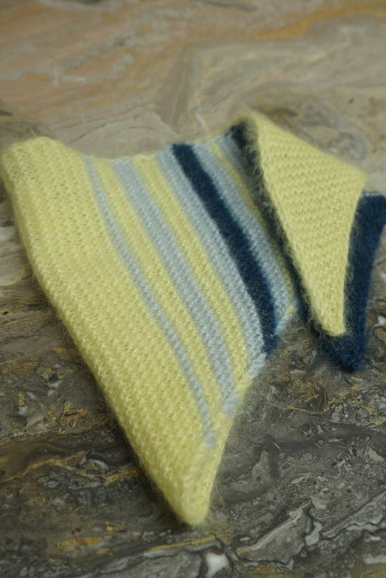This bandana-style scarf is shaped using a fully fashioned technique and showcases a gradient knit that blends two shades of yarn into a seamless fade. Spun in Italy from a brushed RMS certified mohair and silk blend. The cruelty free silk strand binds the mohair to give strength and a subtle sheen, while the brushed finish adds softness and texture. Featherlight yet warm, it’s a tactile little bolt of luxury - the perfect addition to your winter wardrobe. Depents how bold you want to be.
