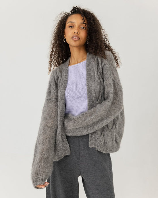 We don't believe in deadstock. This knit is knitted in small batches by our kick-ass knitters. We use RMS-certified, traceable mohair. The best part? You'll get a card with your order telling you exactly who knitted your garment and a little about them.